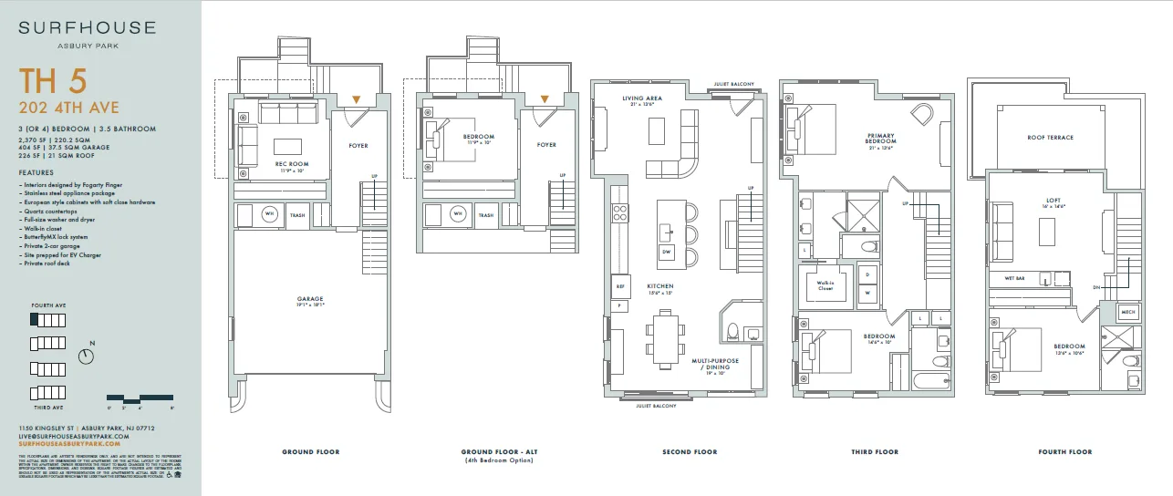 | TH 202-5 | 4 Floors | Townhomes Courtyard | 3-4 w/ Roof Terrace | 3.5 | $13,850 | Floor Plan | Apply Now |